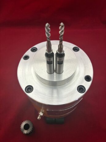 アルミ部品M4タップ加工用固定式多軸ヘッド2軸(狭小ピッチ仕様)